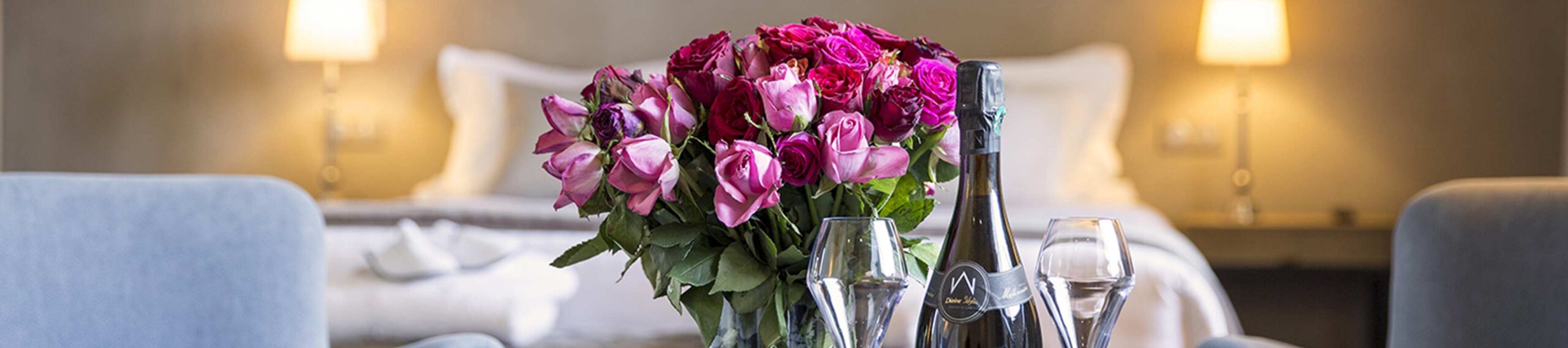 Vous serez accueillis dès 16h par notre réceptionniste, qui vous accompagnera pour vous faire découvrir l’Hôtel, ses différents espaces et vous mènera jusqu’à votre suite. De votre petit salon privatif jusqu’à votre chambre, vous découvrirez la superbe vue plein ouest qui s’offre à vous sur le lac de Mireloup et le Golf Resort de Saint-Malo. Sensibles à vous offrir un accueil chaleureux, découvrez les attentions préparées spécialement pour votre confort : peignoirs molletonnés et chaussons pour vous sentir comme à la maison, et pourquoi pas douceurs sucrées et bouteille de champagne si vous le souhaitez.